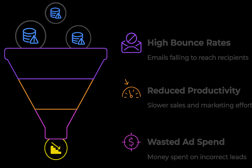 - Wasted Ad Spend – Budgets are lost on inaccurate or irrelevant contacts.